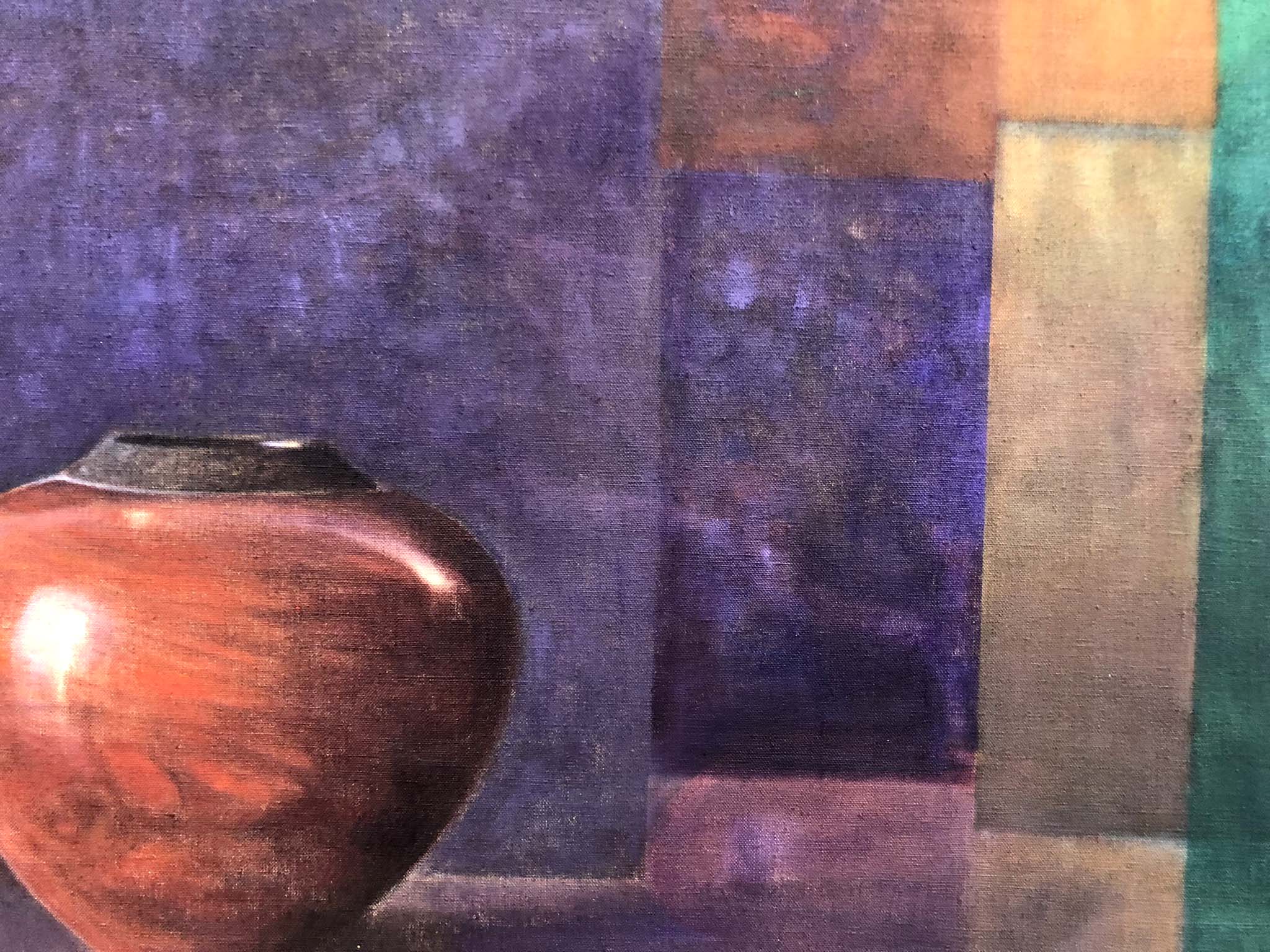 Anette Harboe Flensburg paints rooms, interiors that are empty of human presence yet extremely alive. The motifs in her paintings are realistically rendered, and in the quiet rooms, a pot is occasionally found. There is a sense of mystery, a quiet mist veils the painting and enfolds it. A fluttering curtain from a passing wind sweeps the viewer into a never-before-told story.