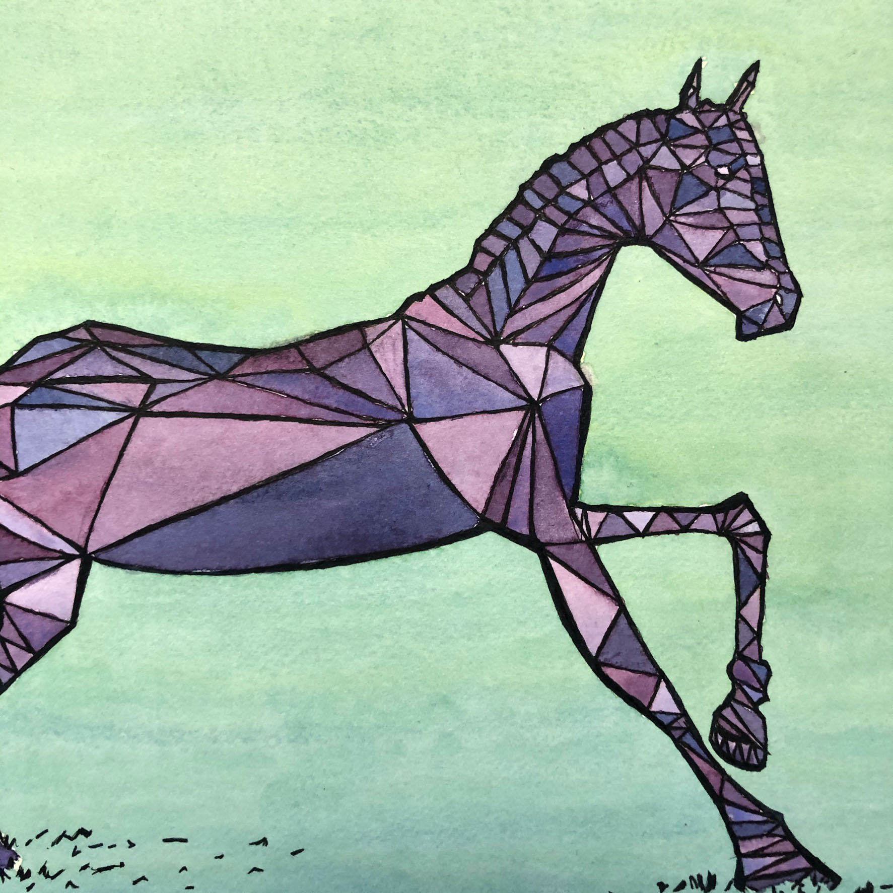 This amethyst horse is one of the five cardinal gemstones whose colors are ruby, emerald, sapphire, diamond, and amethyst. It is a unique aquarelle that represents a universal concept of wealth.